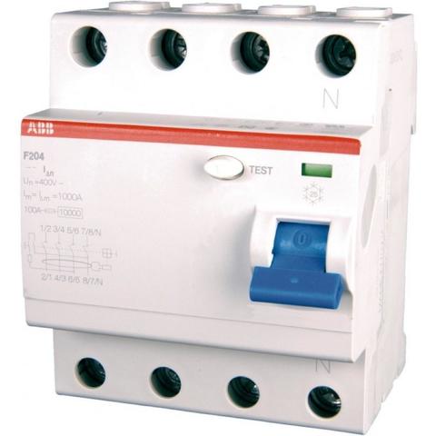 Дифф. выключатель тока УЗО 4-полюсный 63 А, тип A, 1 кА F204 A S-63/0,1. ABB. 2CSF204201R2630