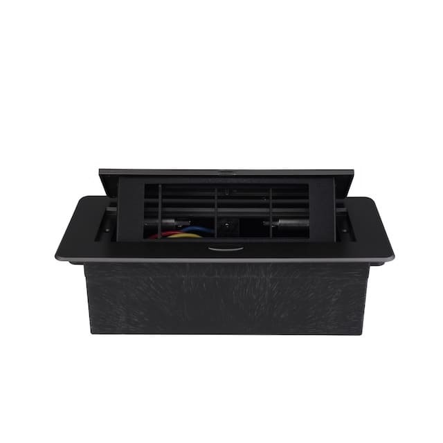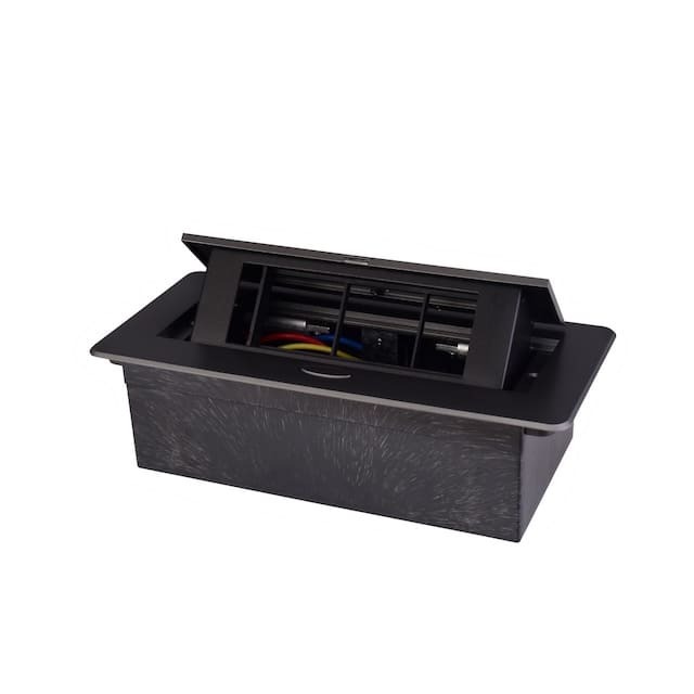 Лючок для розеток в столешницу на 3 поста - профессиональное решение для организации рабочих мест в открытых интерьерах, где требуется прямое подведение электропитания и информационных сетей на площади в удалении от основных стен.