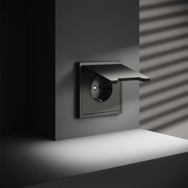 Розетка электрическая 2К+З 16А с заземлением, шторками и крышкой. Цвет Титан. MAYTONI. VOLTUM S70. VLS040306