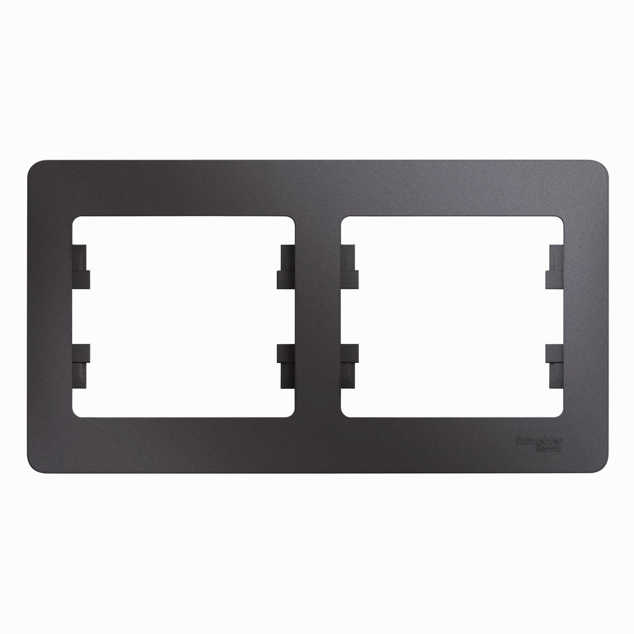 Рамка Schneider Electric Glossa (цвет графит) двухместная. - Устанавливается в горизонтальном положении. - Выполнена из материала PС+ASA, стойкого к УФ-излучению и появлению царапин. - Позволяет гармонично вписать электроустановочное изделие в интерьер помещения.