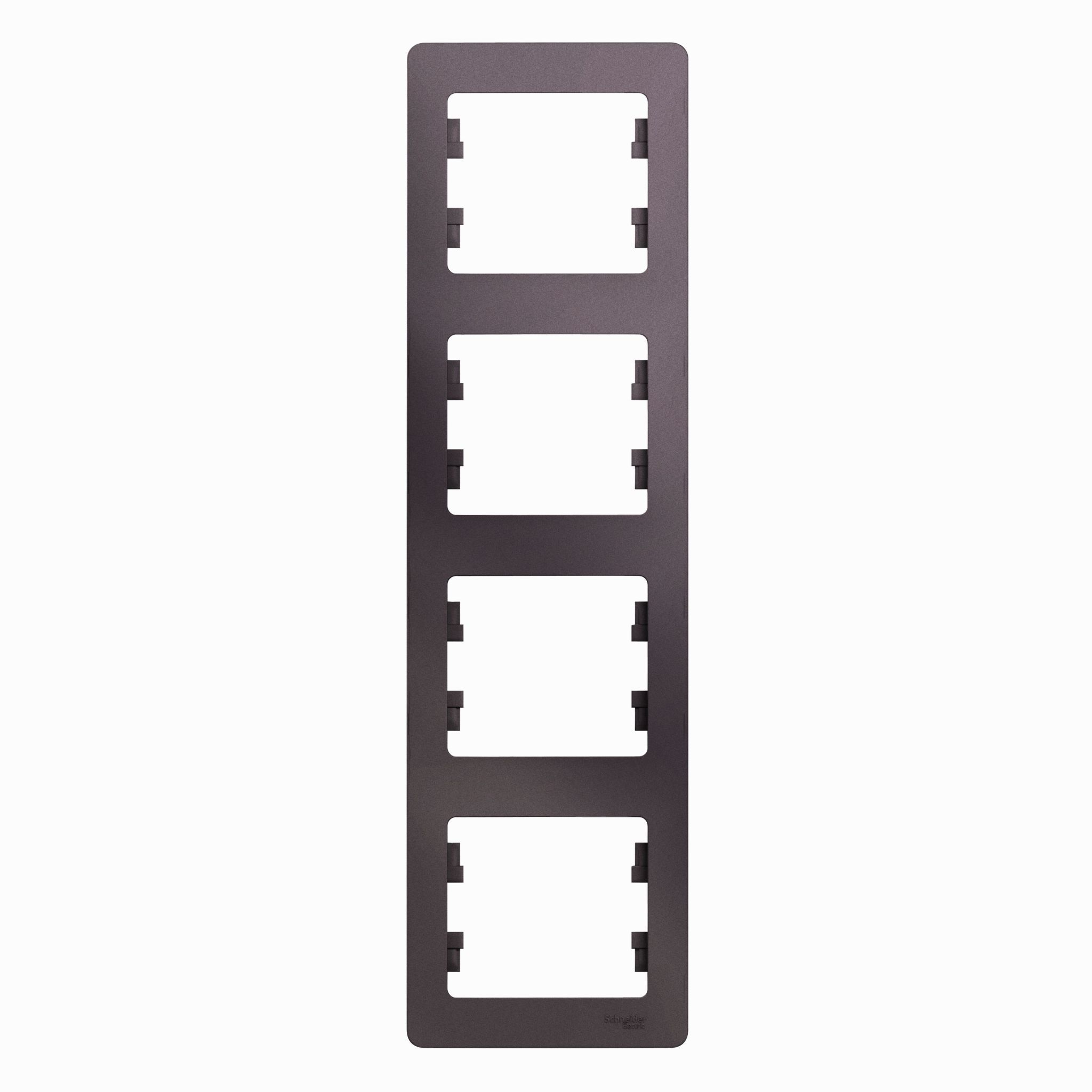 Рамка Schneider Electric Glossa (цвет сиреневый туман) четырёхместная. - Устанавливается в вертикальном положении. - Выполнена из материала PС+ASA, стойкого к УФ-излучению и появлению царапин. - Позволяет гармонично вписать электроустановочное изделие в интерьер помещения.