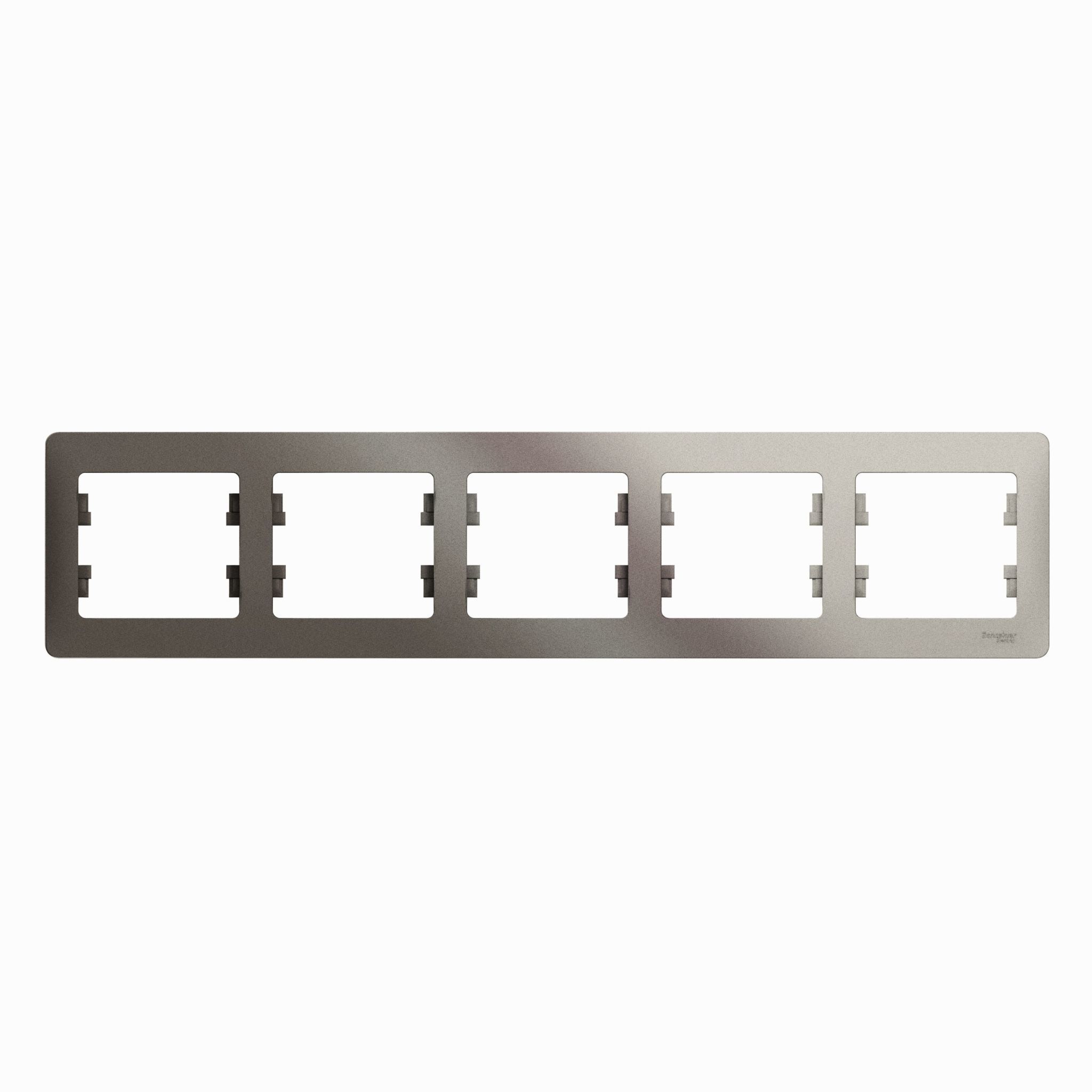 Рамка Schneider Electric Glossa (цвет платина) пятиместная. - Устанавливается в горизонтальном положении. - Выполнена из материала PС+ASA, стойкого к УФ-излучению и появлению царапин. - Позволяет гармонично вписать электроустановочное изделие в интерьер помещения.