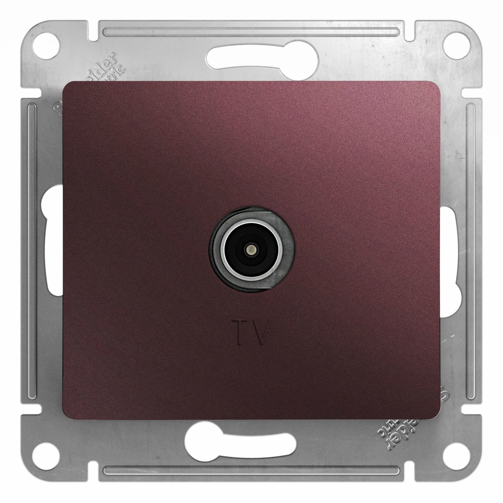Механизм Schneider Electric Glossa (цвет баклажановый) розетки TV проходной 4DB ппредназначен для подключения телевизора к телевизионной сети. - Проходная розетка используется в начале и середине подключения «в линию». - Выполнен из материала PС+ASA, стойкого к УФ-излучению и появлению царапин.