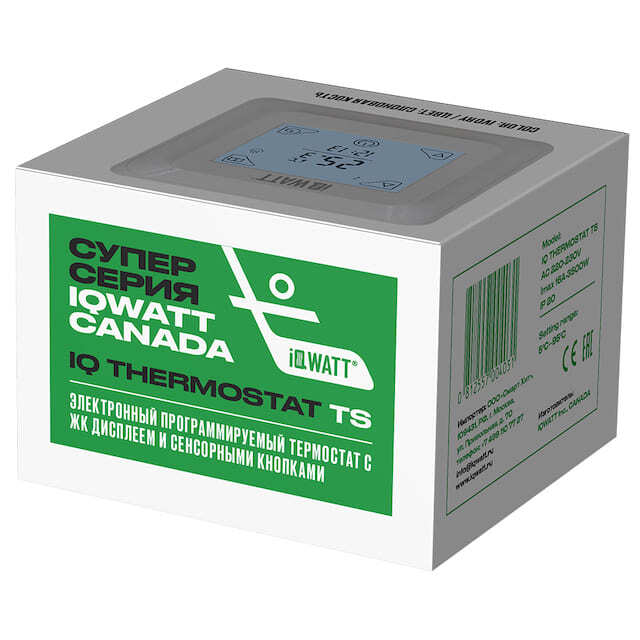 IQ THERMOSTAT TS для удобства настройки оборудован жидкокристаллическим дисплеем и сенсорными кнопками. Терморегулятор имеет простое и удобное меню программирования, на дисплее отображается текущая и заданная температура с точностью до 0,5 С.