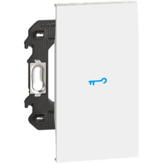 Коллекция серии Living Now от Bticino. Выключатель КНОПКА одноклавишный с подсветкой синего цвета и пиктограммой "ключ" на лицевой панели белого цвета серии Living Now от Bticino - 2 модуля.