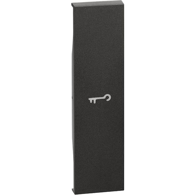 Коллекция серии Living Now от Bticino. Переключатель КНОПКА двухклавишный проходного типа с пиктограммой "ключ" на лицевой панели чёрного цвета серии Living Now от Bticino - 2 модуля.