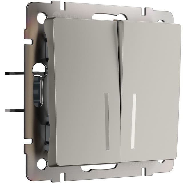 Выключатель/переключатель двухклавишный на 2 направления(проходной) с подсветкой. Цвет Дымчатый. Werkel(Веркель). Встраиваемые механизмы. a069459 / W1222104