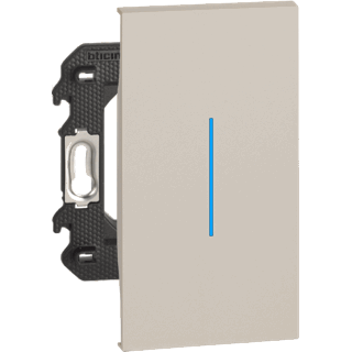 Коллекция серии Living Now от Bticino. Переключатель КНОПКА одноклавишный проходного типа с подсветкой синего цвета и лицевой панелью песочного цвета серии Living Now от Bticino - 2 модуля.